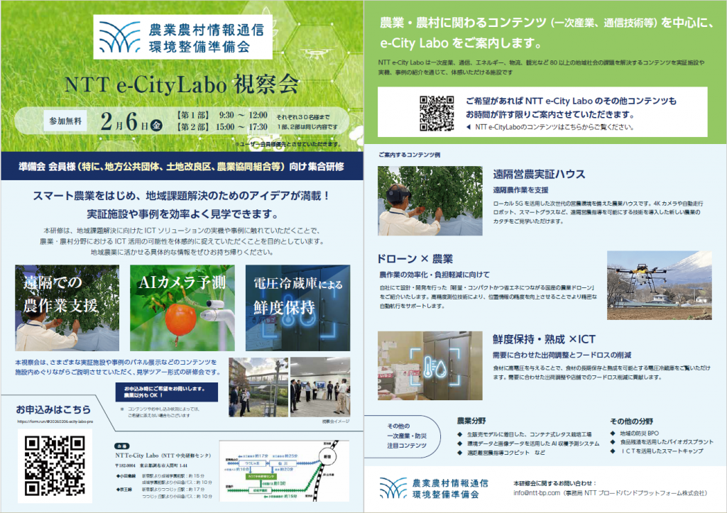 当日はNTTe-City Laboのコンテンツの中から農業・農村に関わるものを中心にNTTの担当者よりご説明いただきます。